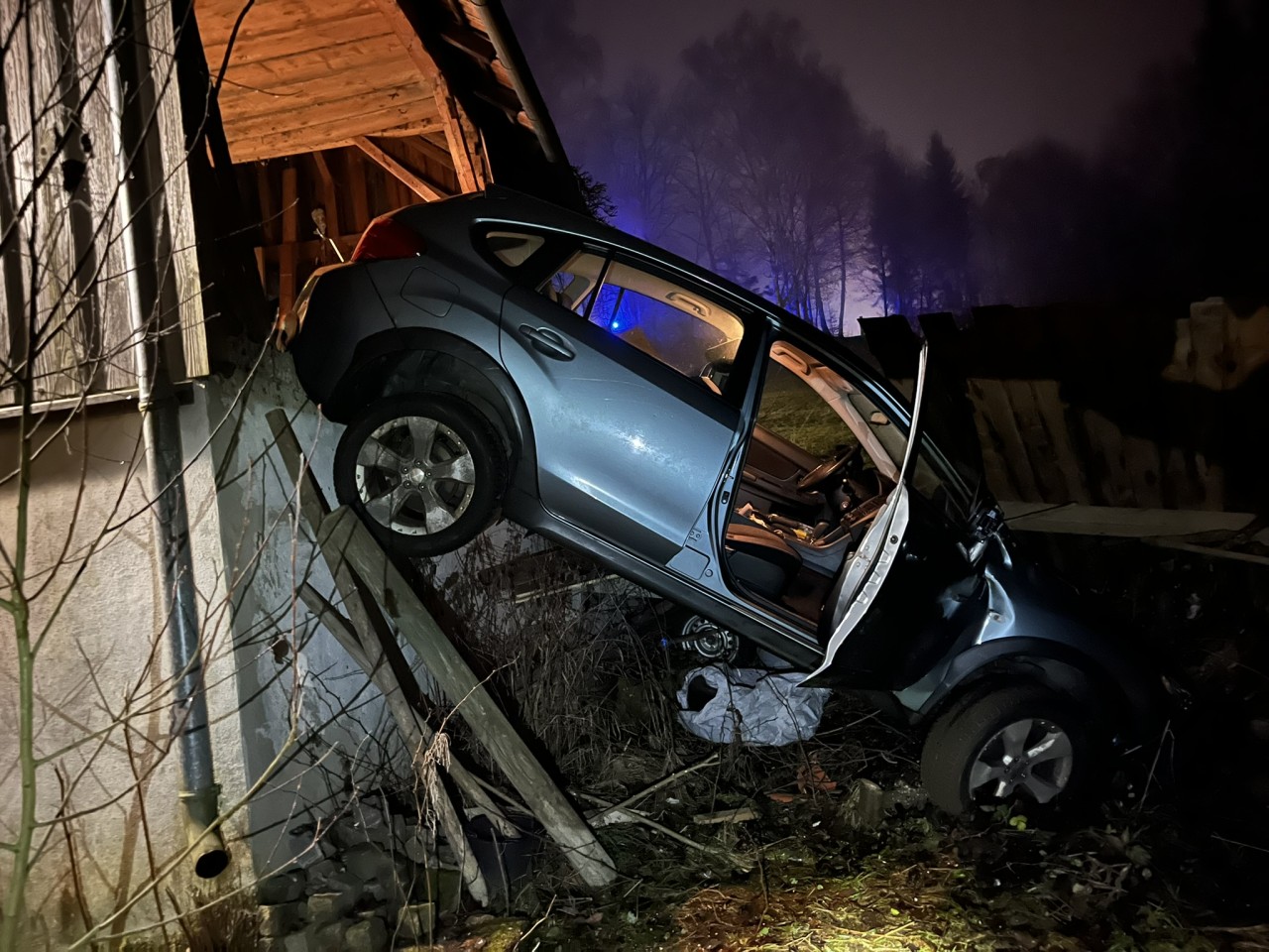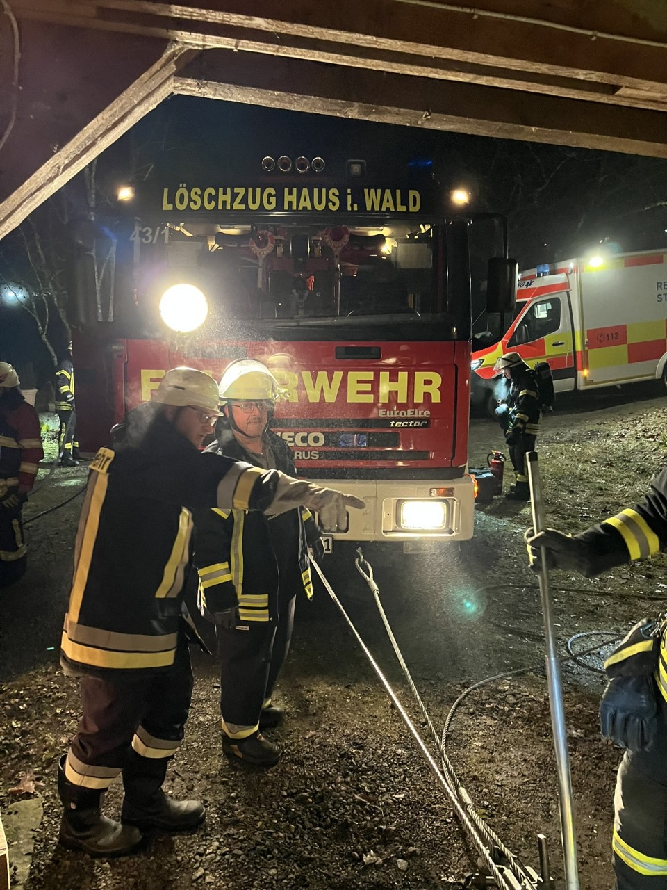 Nach der Sicherung des Fahrzeugs konnte der Patient unverletzt gerettet werden. Freiwillige Feuerwehr der Stadt Grafenau danke für die Unterstützung.